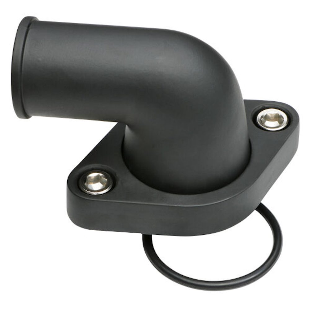 Black Aluminium O-Ring Style 90 Degree Swivel Water Neck / Thermostat Housing SB & BB Chevy 1955 Up