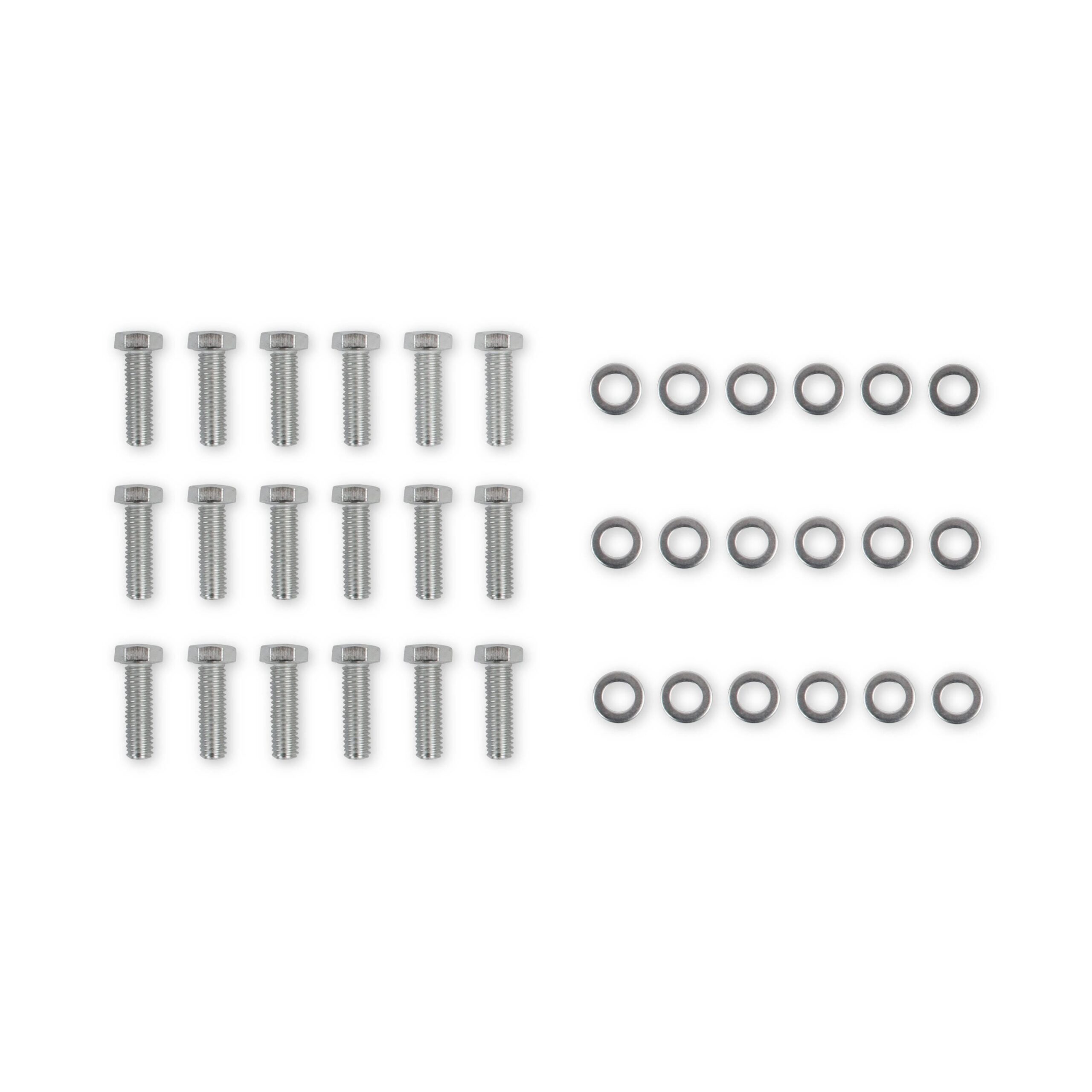 Grade 5 hex head bolts are zinc plated for protection and appearanceHardened flat washers provide uniform torque & prevent galling on aluminum manifolds